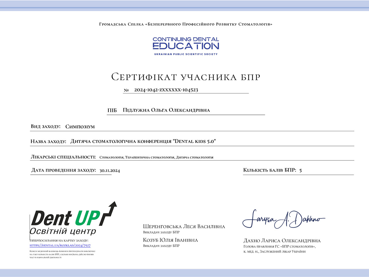 - Спеціалізацію дитяча стоматологія отримала 30.04.2024 Дитяча стоматологія від А до Я